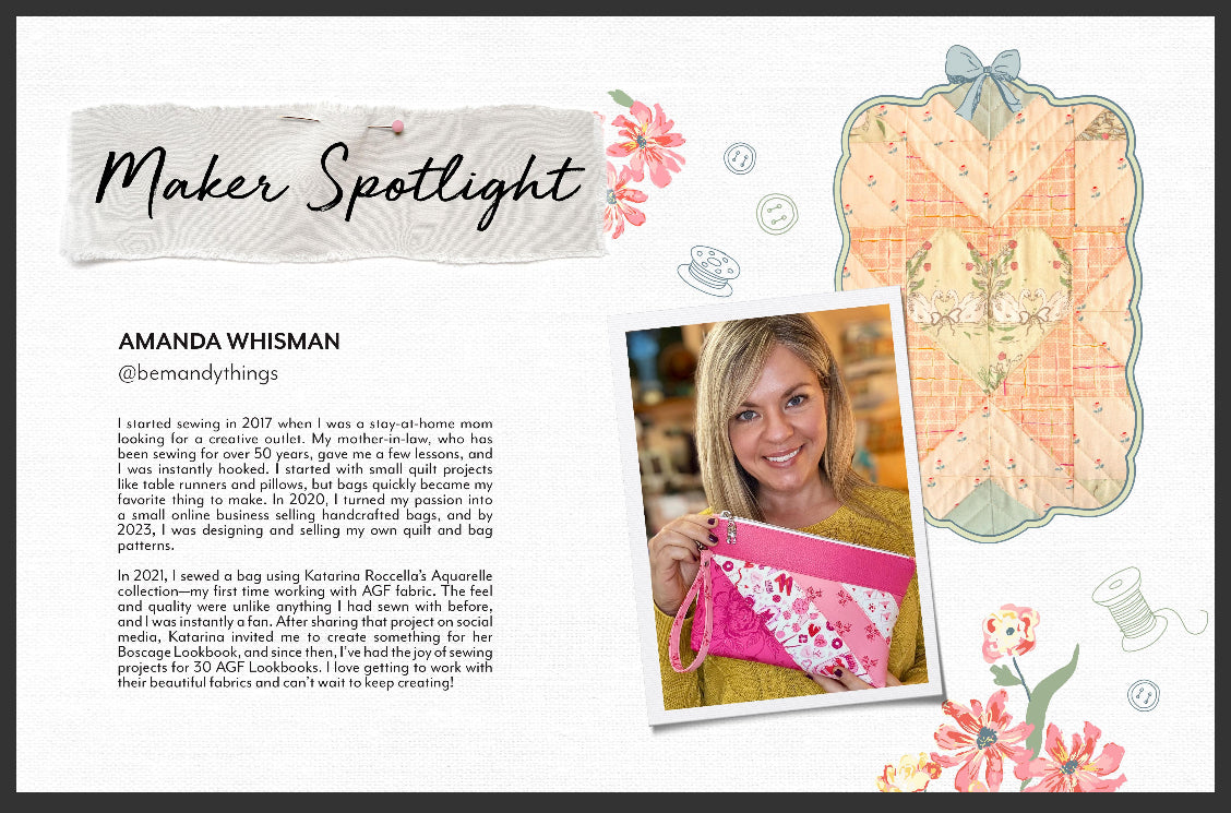 If you're looking for bagmaking inspiration using premium quilting cottons and beautiful designer prints, you're in the right place. I’ve had the joy of collaborating on over 30 sewing projects featured in Art Gallery Fabrics Lookbooks. Each project showcases professional sewing techniques, thoughtful details, and fabric collections that make every handmade item feel like a piece of art. Scroll through this curated list to explore pattern names and fabric collections featured in each project!