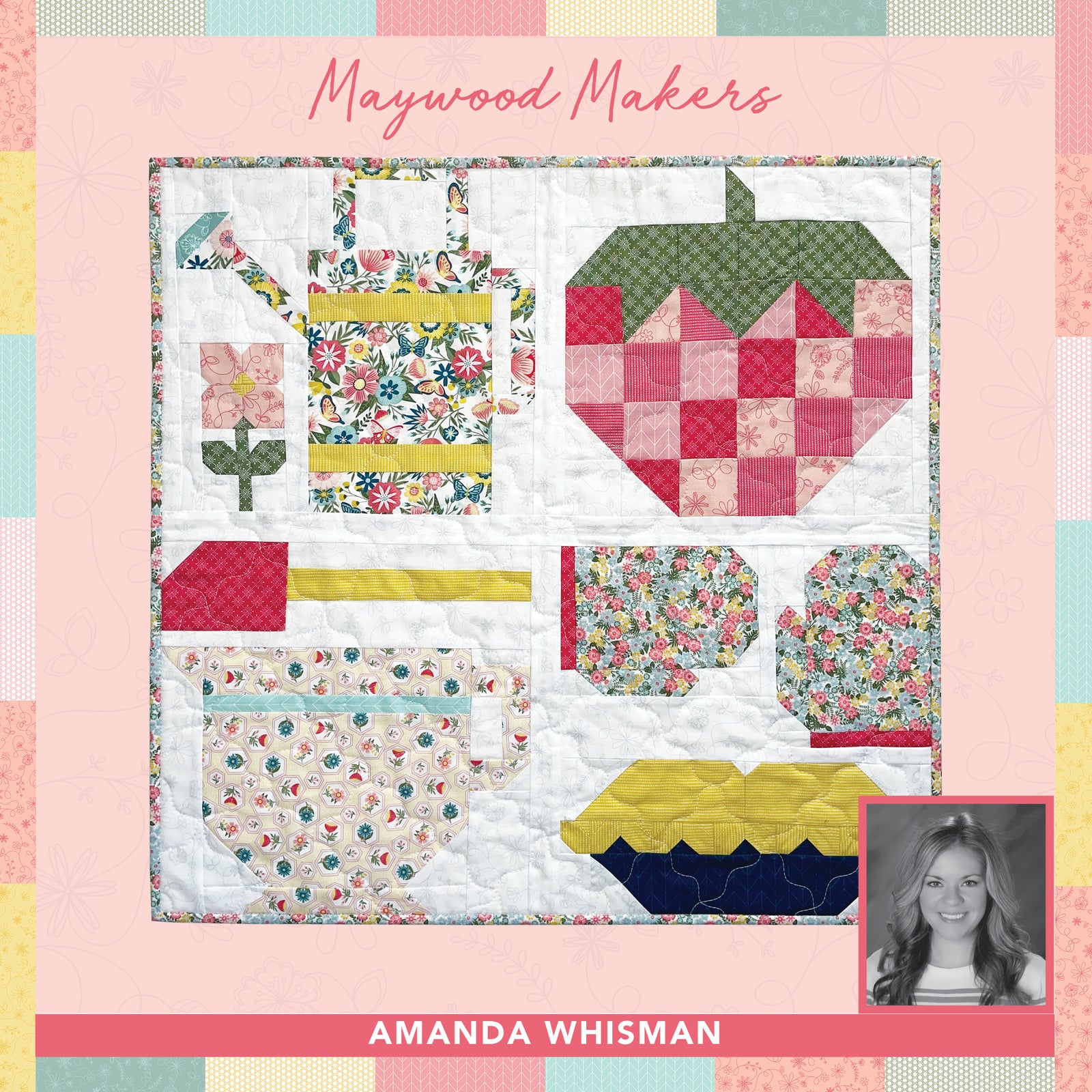 Watch VideoOur first Maywood Maker project was to create a mini quilt under the theme, Welcome To Our Garden. I chose a story to tell with my quilt, one of how an endearing strawberry plant came to fruition and ended up as a delicious pie! We used Kimberbell's Vintage Flora Collection to create our quilts. These were featured at the Sisters Outdoor Quilt Show in Sisters, OR, July 2023. This was my first quilt in a quilt show, and I'm so honored I got to be a part of it!